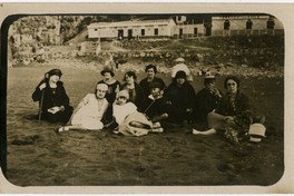 [Grupo familiar en un balneario] [fotografía]. [Chile : entre 1920 y 1930]. 1 fotografía : monocromo, gelatina sobre papel fibra ; 9 x 13 cm .