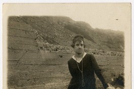 [Mujer con collar apoyada en una roca] [fotografía]. [Chile : entre 1920 y 1930]. 1 fotografía : monocromo, gelatina sobre papel fibra ; 14 x 9 cm .