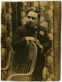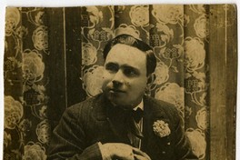 [Hombre apoyado en sillón de mimbre] [fotografía]. [Santiago? : entre 1940 y 1950]. 1 fotografía : monocromo, gelatina sobre papel fibra ; 14 x 11 cm .