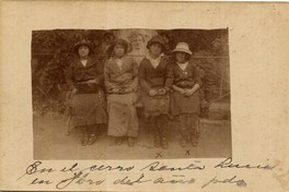 En borde inferior de la fotografía escrito con lápiz tinta se lee: En el cerro Santa Lucía en jira del año pdo.