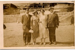 Dos mujeres con boina y dos hombres, aparecen en la fotografía de pie en [Cartagena]. De fondo, se aprecia un cartel donde está escrito "Cinzano".