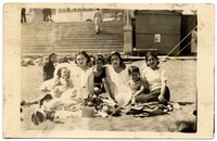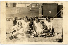 [Mujeres y niños en balneario de Constitución] [fotografía]. Constitución : 1937. 1 fotografía : monocromo, gelatina sobre papel fibra ; 9 x 14 cm .