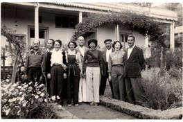 [Grupo de personas adultas en jardín de casa estilo colonial] [fotografía] [Fotografía de Francisco Bley].
