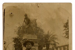 [Hombre delante de estatua de Caupolicán en Plaza de Rengo] [fotografía].