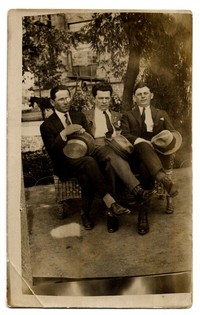 [Hombres con sombreros en sillón de mimbre] [fotografía]. [Chile] : 1924. 1 fotografía : monocromo, gelatina sobre papel fibra ; 14 x 9 cm. .