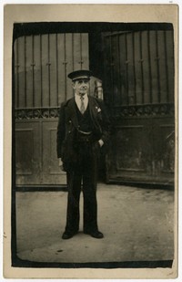 [Hombre con gorra en el portón de la Viña Concha y Toro] [fotografía]. Santiago : 1945. 1 fotografía : monocromo, gelatina sobre papel fibra ; 14 x 9 cm. .