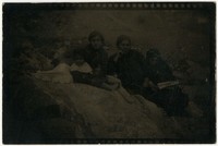 [Mujeres y niña en roquerío de balneario] [fotografía]. [Chile : entre 1930 y 1940]. 1 fotografía : monocromo, gelatina sobre papel fibra ; 7 x 11 cm .