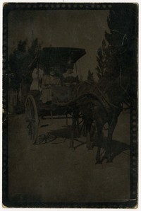[Mujeres en un carruaje] [fotografía]. [Chile : entre 1910 y 1920]. 1 fotografía : monocromo, gelatina sobre papel fibra ; 11 x 7 cm .