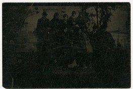 [Grupo de personas a los pies de monumento] [fotografía]. [Chile : entre 1920 y 1930]. 1 fotografía : monocromo, gelatina sobre papel fibra ; 8 x 11 cm .