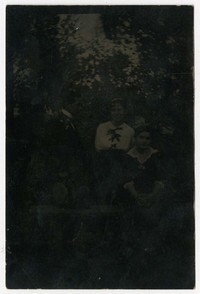 [Mujeres y hombre al aire libre] [fotografía]. Santiago : 1913. 1 fotografía : monocromo, gelatina sobre papel fibra ; 11 x 7 cm .