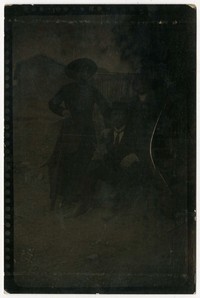 [Mujer, hombre y niño al aire libre] [fotografía]. [Chile : entre 1910 y 1920]. 1 fotografía : monocromo, gelatina sobre papel fibra ; 11 x 7 cm .