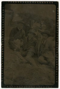 [Hombres y jovenes en balneario] [fotografía]. [Chile : entre 1910 y 1920]. 1 fotografía : monocromo, gelatina sobre papel fibra ; 11 x 7 cm .