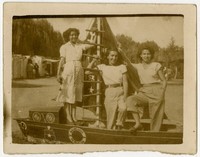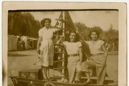 [Mujeres al interior de bote "Gilda", en el balneario de Peñaflor] [fotografía]. Santiago : 1952. 1 fotografía : monocromo, gelatina sobre papel fibra ; 7 x 9 cm .