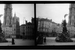 Monocromas estereoscópicas en que se inmortaliza la fuente del Brabo situada en la Grote Markt (Plaza Mayor) de Amberes, frente al Ayuntamiento de la ciudad.