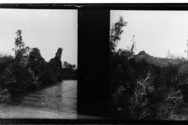 [Vista de la orilla del Río Pelchuquin] [fotografía] / Julio Bertrand Vidal. Valdivia, Chile, [entre 1906 y 1907] 1 fotografía sobre placa de vidrio : monocroma estereoscópica ; 4,4 x 10,7 cm. .