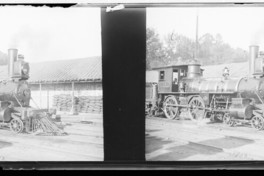 [Locomotora en Nos] [fotografía] / Julio Bertrand Vidal. Valdivia, Chile, [Entre 1905 y 1907] 1 fotografía sobre placa de vidrio : monocroma estereoscópica ; 4,4 x 10,7 cm. .