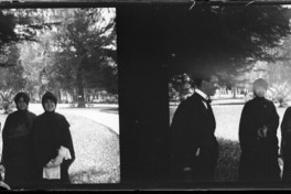 [Retrato de tres mujeres y un hombre joven, posan en Parque Cousiño] [fotografía] / Julio Bertrand Vidal. Santiago de Chile, [entre 1905 y 1906] 1 fotografía sobre placa de vidrio : monocroma estereoscópica ; 4,4 x 10,7 cm. .