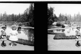 [Retrato de dos niñas, posan en la laguna del Parque Cousiño] [fotografía] / Julio Bertrand Vidal. Santiago de Chile, [entre 1905 y 1906] 1 fotografía sobre placa de vidrio : monocroma estereoscópica ; 4,4 x 10,7 cm. .