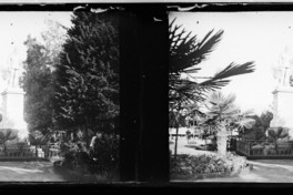 [Escultura de Pedro de Valdivia, instalada en el cerro Santa Lucía] [fotografía] / Julio Bertrand Vidal. Santiago de Chile, [entre 1905 y 1906] 1 fotografía sobre placa de vidrio : monocroma estereoscópica ; 4,4 x 10,7 cm. .