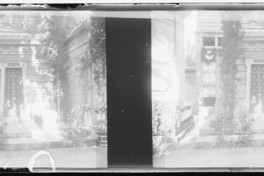 [Vista de Mausoleo Familiar, Cementerio General] [fotografía] / Julio Bertrand Vidal. Santiago de Chile, [entre 1905 y 1906] 1 fotografía sobre placa de vidrio : monocroma estereoscópica ; 4,4 x 10,7 cm. .