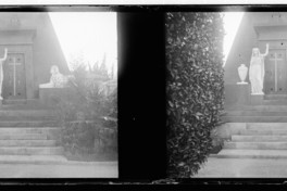 Monocromas estereoscópicas en que se inmortaliza el mausoleo de la familia de Domingo Matte en el Cementerio General, forma de pirámide en punta, que incluye una esfinge y la figura de una mujer egipcia en mármol de Carrara, construido por el arquitecto italiano aproximadamente en 1905, ubicada en la parte central del Patio 16.