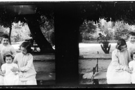Monocromas estereoscópicas en que se inmortaliza a cuatro niños posando para el fotógrafo, al lado izquierdo es Raquel, la guagua María, la otra niña Ester y el niño Raul.