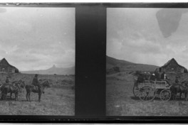 [Retrato de grupo en carreta con caballos] [fotografía] / Julio Bertrand Vidal. [Región de la Araucanía], 1906 1 fotografía sobre placa de vidrio : monocroma estereoscópica ; 4,4 x 10,7 cm. .