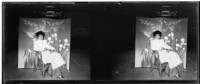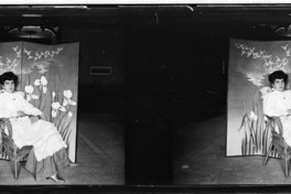 Monocromas estereoscópicas en que se inmortaliza a Amalia Vergara (señora del hermano de Julio, Ernesto) sentada en sillón de mimbre, atrás biombo con flores y pájaros.