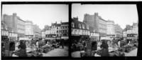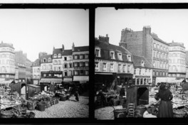 Monocromas estereoscópicas en que se inmortaliza el mercado en la plaza Boulogne Sur Mer de Francia.