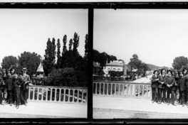 [Retrato de un grupo de hombres posando sobre un puente en Londres] [fotografía] Julio Bertrand Vidal. Paris, 1907 1 fotografía sobre placa de vidrio : monocroma estereoscópica ; 4,4 x 10,7 cm. .