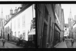 [Calle Jeanine, vista a la Iglesia de Notre-Dame] [fotografía] Julio Bertrand Vidal. Dijon, 1908 1 fotografía sobre placa de vidrio : monocroma estereoscópica ; 4,4 x 10,7 cm. .