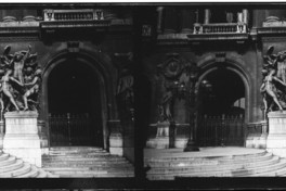 [Vista de la escultura la Danza en la fachada de la Ópera de París] [fotografía] Julio Bertrand Vidal. Paris, Francia, 1909 1 fotografía sobre placa de vidrio : monocroma estereoscópica ; 4,4 x 10,7 cm. .