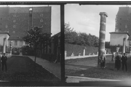 [Retrato de grupo en el patio de una casa] [fotografía] Julio Bertrand Vidal. Paris, Francia, 1909 1 fotografía sobre placa de vidrio : monocroma estereoscópica ; 4,4 x 10,7 cm. .