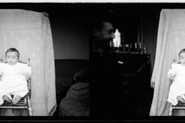 Monocromas estereoscópicas en que se inmortaliza niña de unos 8 meses con vestido blanco en el interior de una casa.
