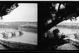 Monocromas estereoscópicas en que se inmortaliza el puente de Aviñón (Pont d'Avignon) construcción de piedra con arcos situado sobre el río Ródano.