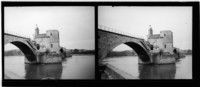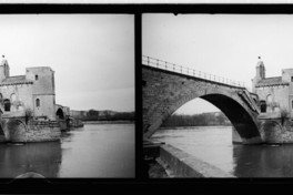 Monocromas estereoscópicas en que se inmortaliza el puente de Aviñón (Pont d'Avignon) junto a la capilla san Bénézet o de san Nicolás sobre el río Ródano.