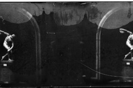 Monocromas estereoscópicas en que se inmortaliza la escultura griega "Discóbolo" en mármol, representa a un atleta justo en el instante anterior a lanzar un disco.