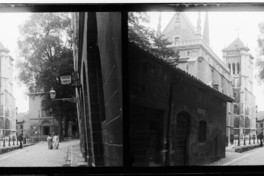 [Vista de la Catedral de San Pedro, estación de bomberos, personas caminando y edificios aledaños] [fotografía] / Julio Bertrand Vidal. Ginebra, Suiza 1908 1 fotografía sobre placa de vidrio : monocroma estereoscópica ; 4,4 x 10,7 cm. .