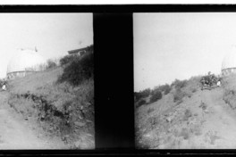 Monocromas estereoscópicas en que se inmortaliza el camino hacia el edificio personas a caballo, primer plano del observatorio junto a dos personas una de ellas jugando con un perro y el interior del observatorio.