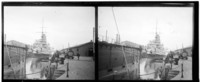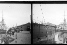 [Embarcación O'Higgins en el interior del dique] [fotografía] / Julio Bertrand Vidal. Talcahuano, [entre 1905 y 1906] 2 fotografías sobre placa de vidrio : monocroma estereoscópica ; 4,4 x 10,7 cm. .