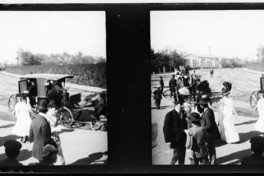 [Retrato de grupo en coche, llegando al Club Hipico] [fotografía] / Julio Bertrand Vidal. Santiago de Chile, 1906 4 fotografías sobre placa de vidrio : monocroma estereoscópica ; 4,4 x 10,7 cm. .