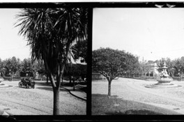 [Paisaje urbano, automóvil en la Plaza Manuel Belgrano, ubicada en el barrio de Belgrano de la Ciudad de Buenos Aires, Argentina] [fotografía] / Julio Bertrand Vidal. Buenos Aires, Argentina, 1907 2 fotografías sobre placa de vidrio : monocroma estereoscópica ; 4,4 x 10,7 cm. .