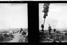 [Paisaje del pueblo de Villarrica y cabalgata con dirección a Pucón] [fotografía] / Julio Bertrand Vidal. Región de la Araucanía, 1906 2 fotografías sobre placa de vidrio : monocroma estereoscópica ; 4,4 x 10,7 cm. .