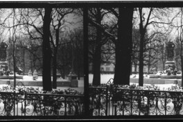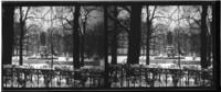 [Vista de la Fuente del Observatorio desde los jardines de Luxemburgo en París] [fotografía] Julio Bertrand Vidal. Paris, Francia, 1908 2 fotografías sobre placa de vidrio : monocroma estereoscópica ; 4,4 x 10,7 cm. .