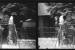 Monocromas estereoscópicas en que se inmortaliza la entrada de hierro forjado en la base de la colina y la portada del castillo.