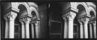 Monocromas estereoscópicas en que se inmortaliza detalles arquitectónicos del interior de la iglesia, arcadas, pórtico, nártex con sobre relieves entre otros.