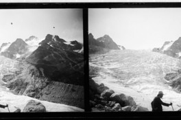 [Alejandro Bertrand, caminando por el Glaciar Trient] [fotografía] / Julio Bertrand Vidal. Suiza, 1908 1 fotografía sobre placa de vidrio : monocroma estereoscópica ; 4,4 x 10,7 cm. .