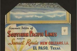 Southern Pacific´s Famous Sunset Roule : Estados Unidos : [Editor no identificado] , [Entre 1938 y 1969]. 1 sobre (18 postales) : fotomecánico, offset policromo, 5 hojas papel ; 16 x 10.5 x 0.2 cm. .