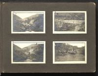 Álbum con estructura tipo libro, de vistas/ viajes. Fotografías insertadas en hoja de embellecimiento y 3 sueltas dentro de un sobre. Encuadernación semiflexible, completa. Cubierta de vinilo color café.