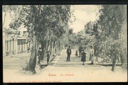Tacna-La Alameda [fotografía] / Carlos Brandt, Editor Iquique : Carlos Brandt, Editor , 1903. 1 tarjeta postal : colotipo, fotomecánico monocromo sobre papel ; 13,5 x 9 cm. .
